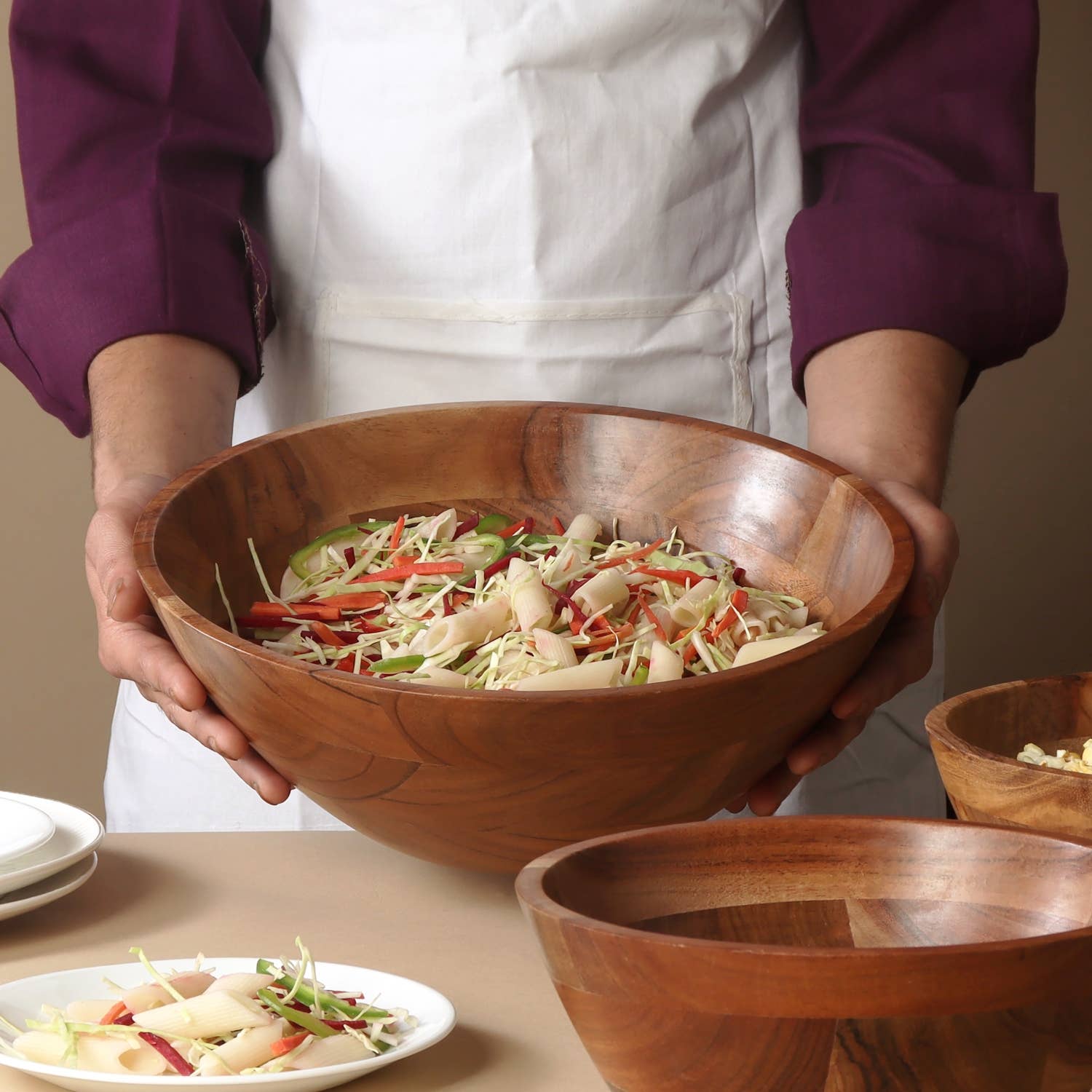 There is nothing like a versatile serving bowl and this one is perfect for anything from salads to popcorn, and everything in between. Crafted from high-quality acacia wood, it features a beautiful. natural grain and smooth finish, adding a warm statement to any tablescape.