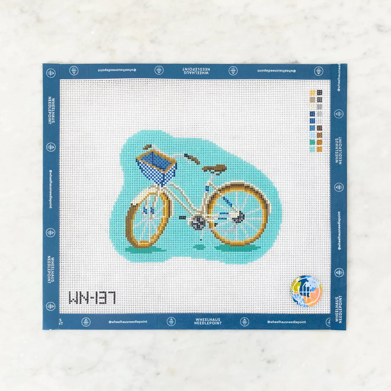 This needlepoint canvas showcases one of our favorite things about coastal living: riding a rusty beach bike on the Ocean Boulevard.